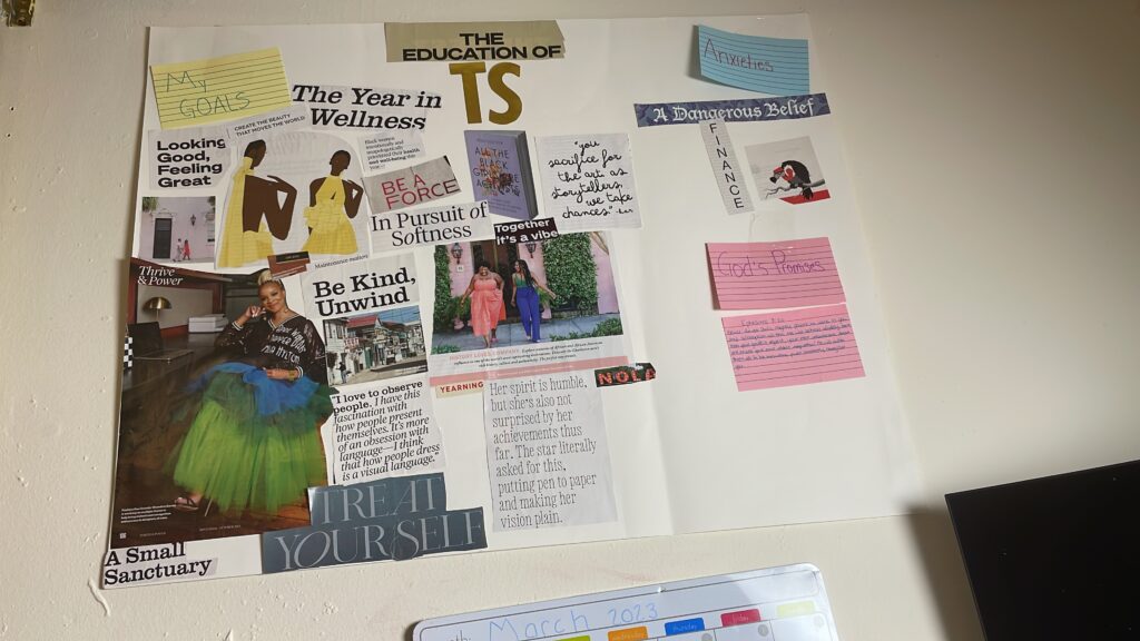 Incidentally, leading up to the vision board party, I was confronted with emotions I didn’t even have the vocabulary for. I noticed that when I am bombarded with emotions, I avoid my prayer corner. One night, I actually sat in my prayer corner on Tiktok, I heard God said to me, “You’re avoiding me” and all I could say was ” Yes, I am.” then I quickly clarified, “I am not avoiding you, I am avoiding the emotions.” I sat there a little while longer, then gave up and went to bed.