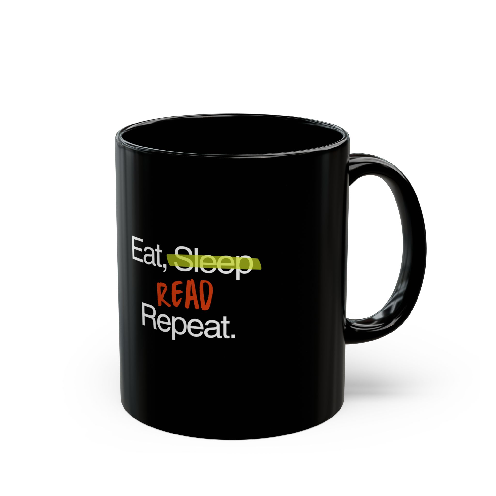 This black mug is perfect for the bookworm in your life. The design ‘Eat Sleep Read and Repeat’ captures the essence of a cozy reading session with a cup of tea. Ideal for those who enjoy spending their days with a good book in hand. Perfect for book lovers, librarians, and teachers. Great for celebrating World Book Day or National Reading Month.